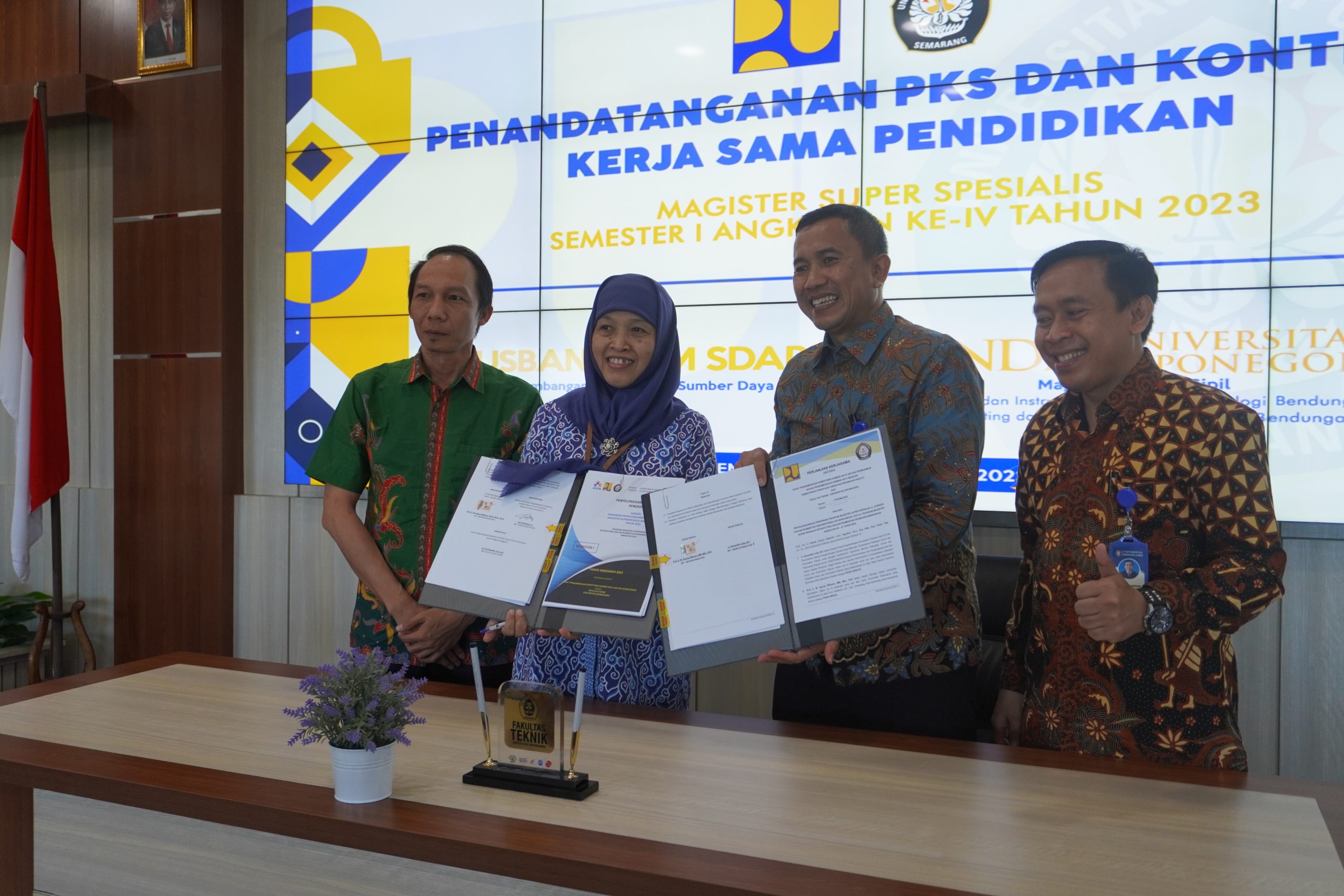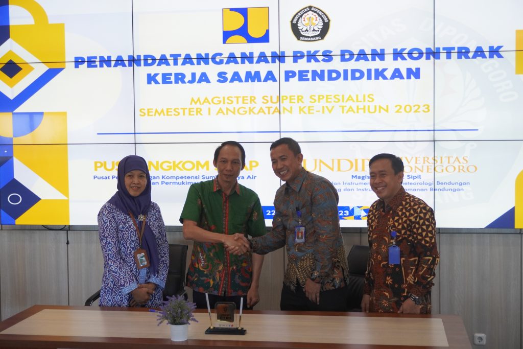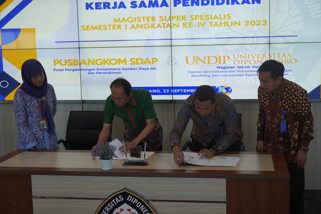 Semarang, 22 September 2023. Magister Teknik Sipil, Fakultas Teknik Universitas Diponegoro kembali melanjutkan kerjasama pendidikan Magister Superspesialis dengan Pusbangkom SDAP Kementerian PUPR. Proses penandatanganan PKS dan Kontrak Kerjasama Pendidikan dilaksanakan di Ruang Theater, Gedung Dekanat lantai 4 Fakultas Teknik. Dalam acara ini, turut hadir dari Pusbangkom SDAP, Kepala Bidang Sistem dan Manajemen Pengembangan Kompetensi, Dr. Fitri Riandini, S.Si, MT, Koordinator Kerjasama dan Sertifikasi Keompetensi, Dr. Nurlia Sadikin, S.Si, MT, dan Pejabat Pembuat Komitmen, Aam Kartama, ST serta beberapa staf dari Pusbangkom SDAP.