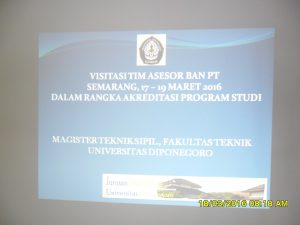 s2sipilsandbox.undip.ac.id – Pada tanggal 17 Maret 2016 – 19 Maret 2016 kemarin telah ada kunjungan dari BAN – PT yaitu adanya kegiatan Visitasi Tim Asesor dari BAN – PT ke Program Studi Magister Teknik Sipil Undip.